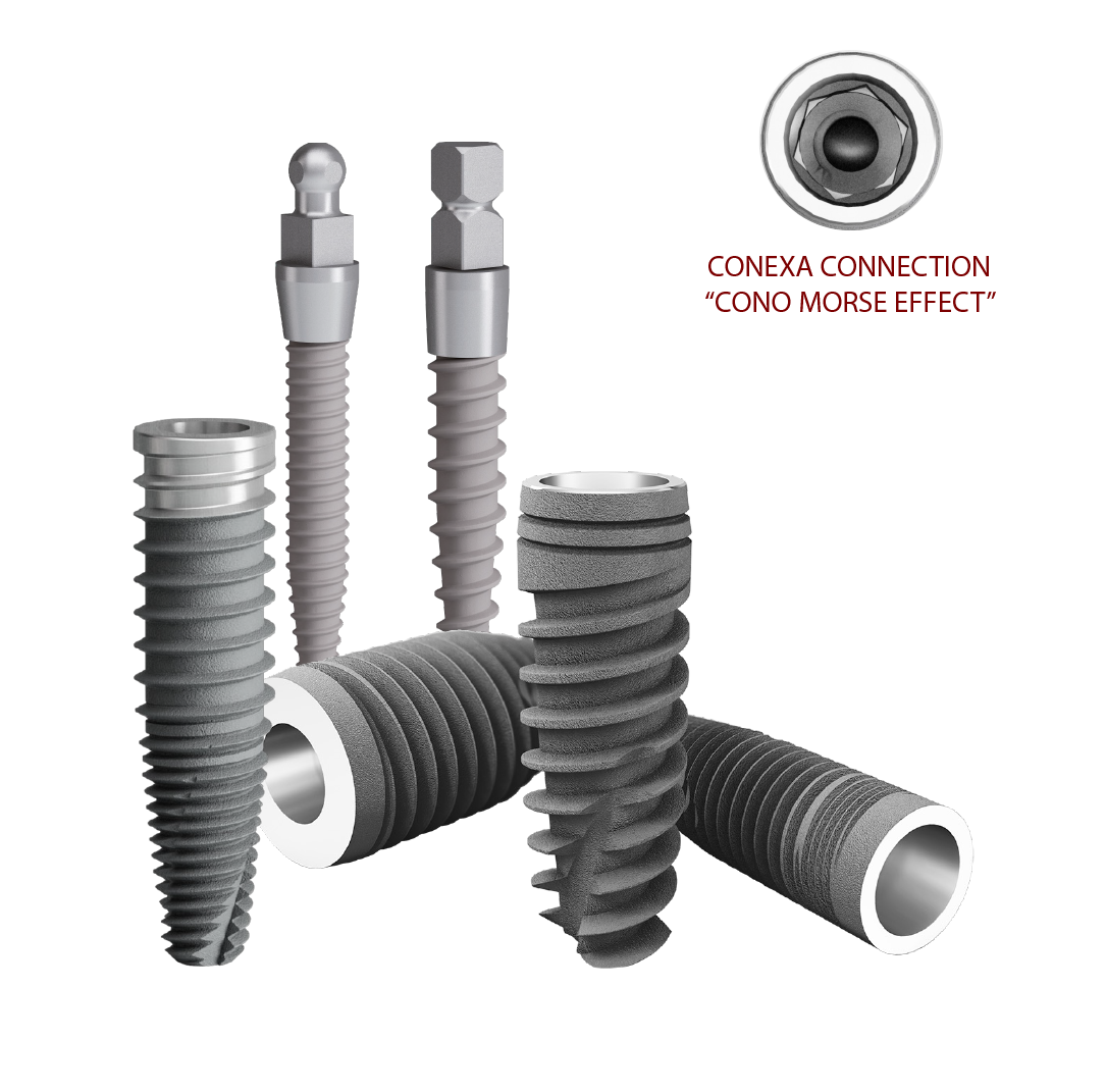 The cylindrical abutment with conical coupling morse taper favours healing of soft tissue and allows for the use of all rotational abutments that permit a screw-retained, cemented and conometric prosthesis to be created.