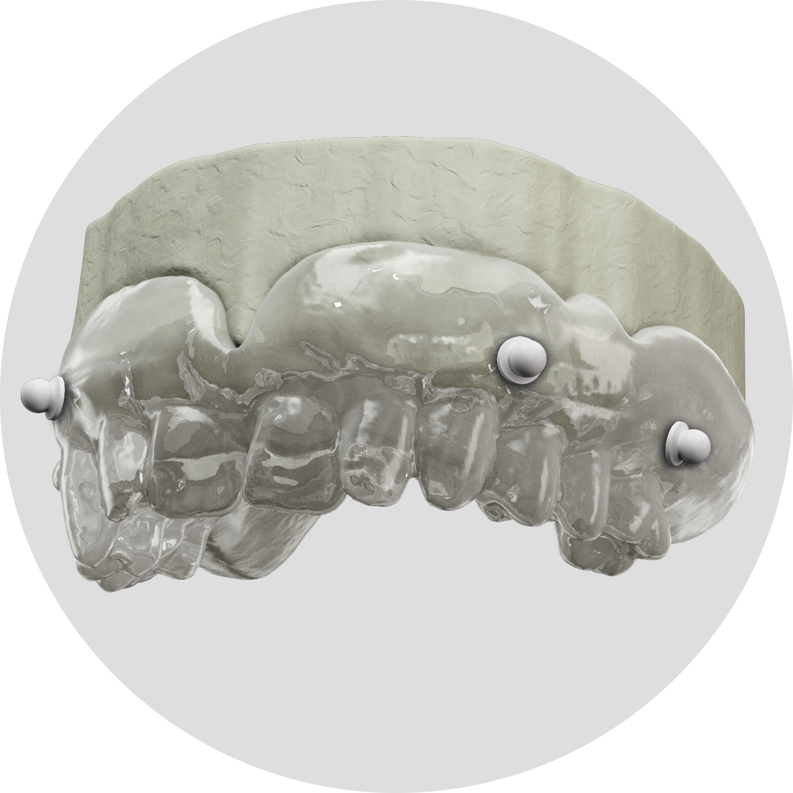 - Establishing spatial alignment through the radiographic template, accurately positioned in the mouth during scanning and on the model itself.